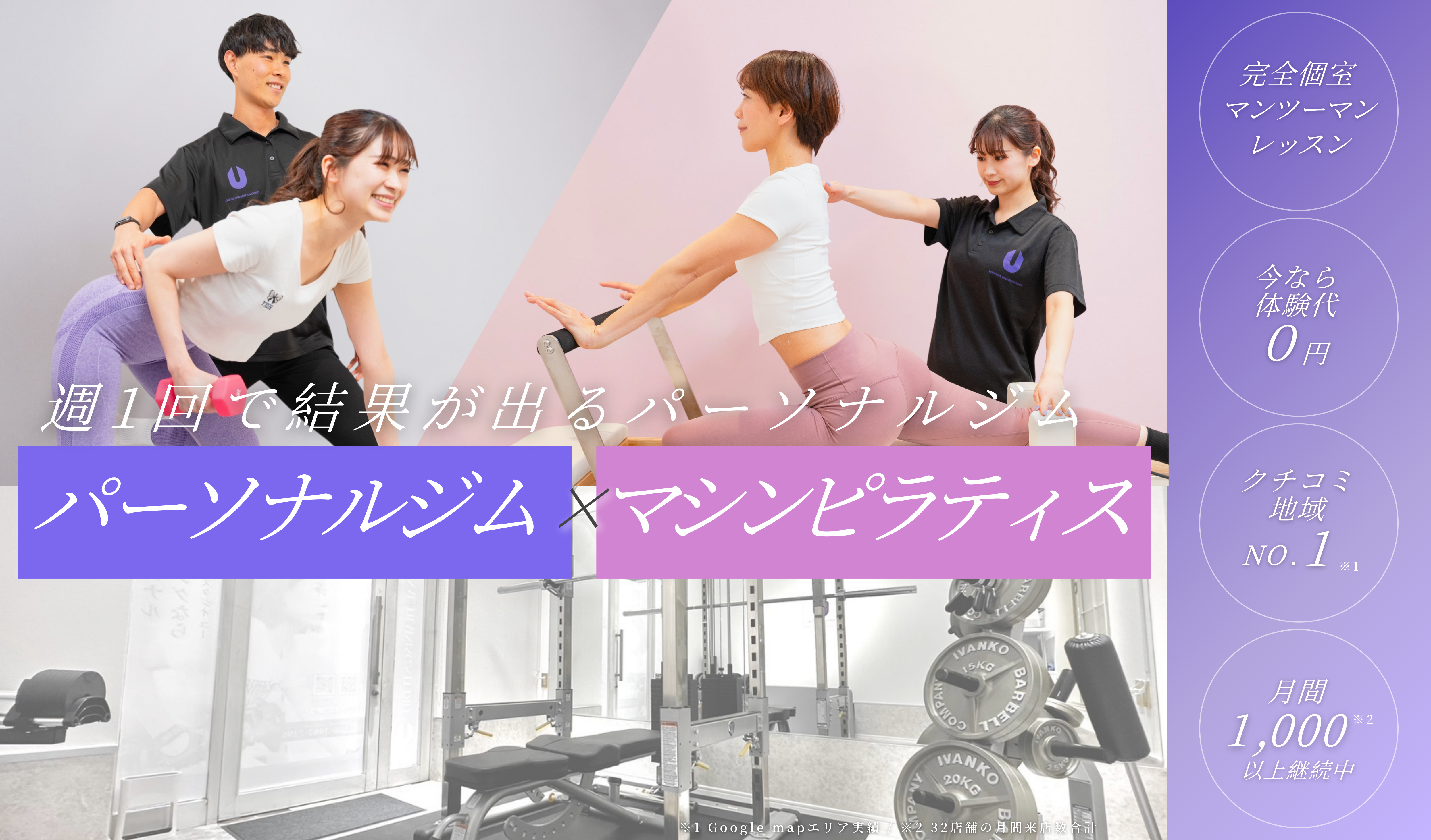 スタジオU大倉山店は、50分間の中でパーソナルトレーニング・マシンピラティスを自由に受ける事ができるハイブリッド型パーソナルジムです。